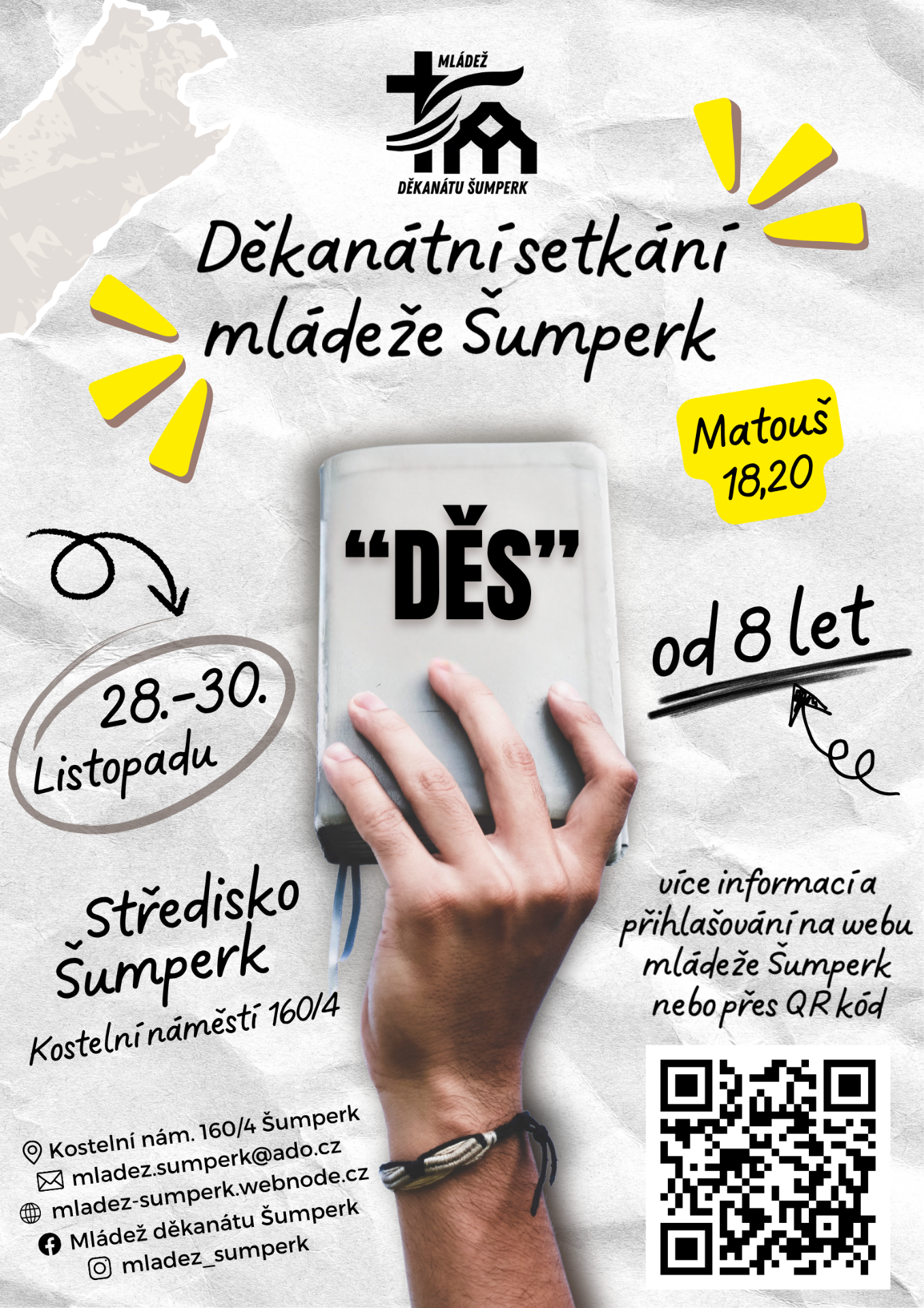 Čeká nás další děkanátko, které se uskuteční 28.-30. 11. v Šumperku na farním středisku a je určeno pro děti a mládež od 8 let z celého děkanátu Šumperk.